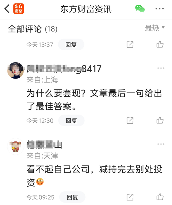 有天津股民认为“看不起自己公司,减持完去别处投资”。